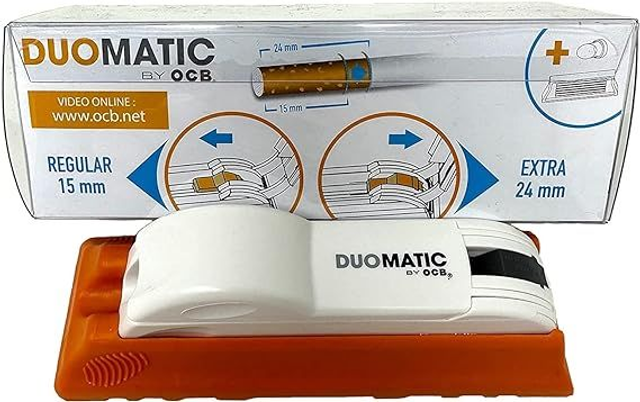 La máquina Duomatic de OCB es un dispositivo innovador diseñado para ayudarte a rellenar tubos de cigarrillos de manera rápida y eficiente. Esta máquina inyectora te permite preparar cigarrillos tanto con tubos cortos (15 mm) como con tubos extra largos (24 mm)