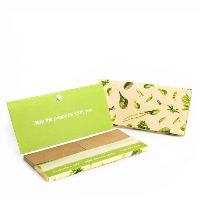 Papel de cáñamo para liar. El librito con cierre magnetico Cannactiva incluye 32 papeles King size slim y 32 filtros de cartón sin blanquear.